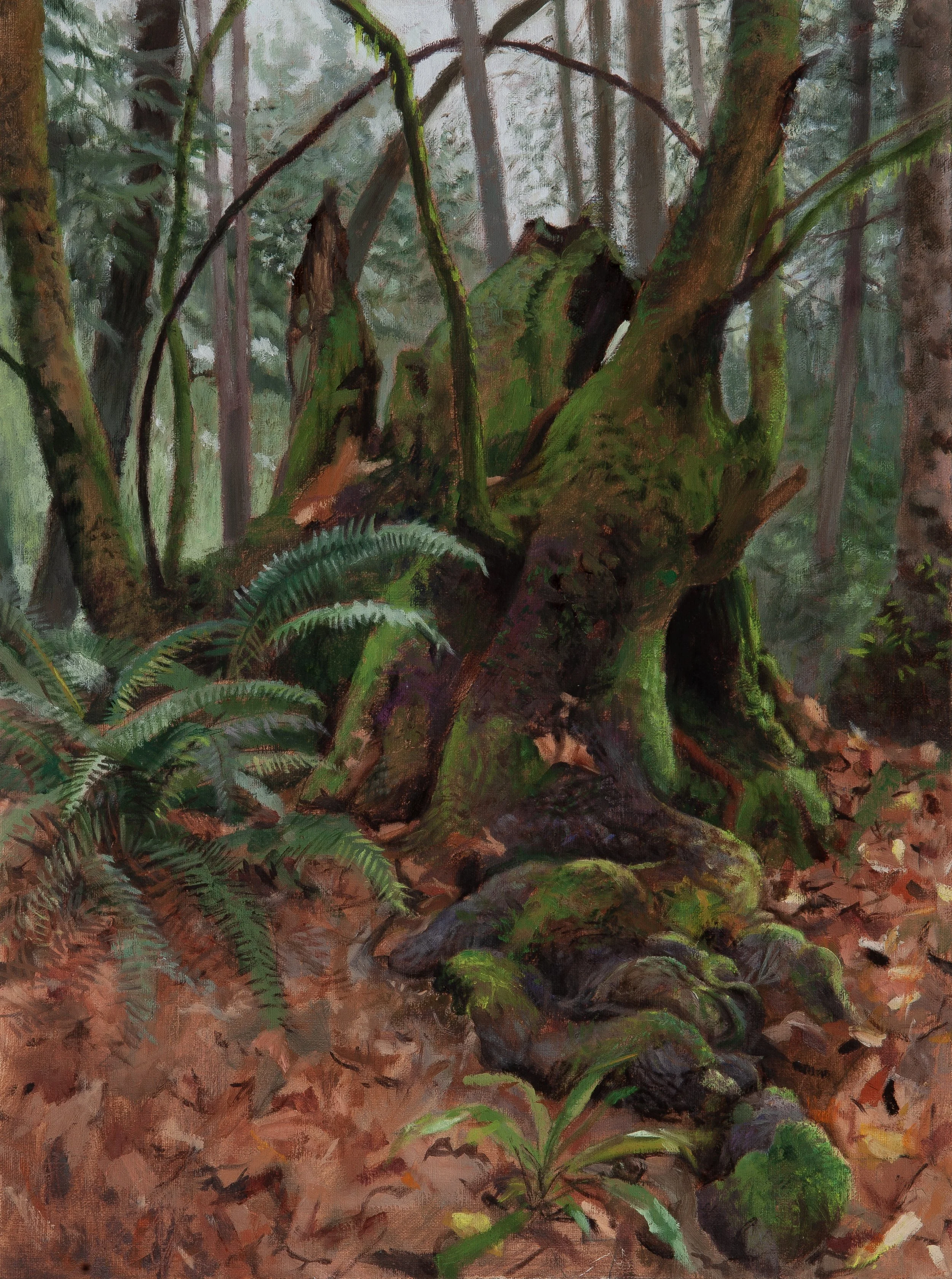 This view captures the root system that supported the majestic life of the maple tree. The roots cascade down the gully still sharing the history of what once was a vital forest member.